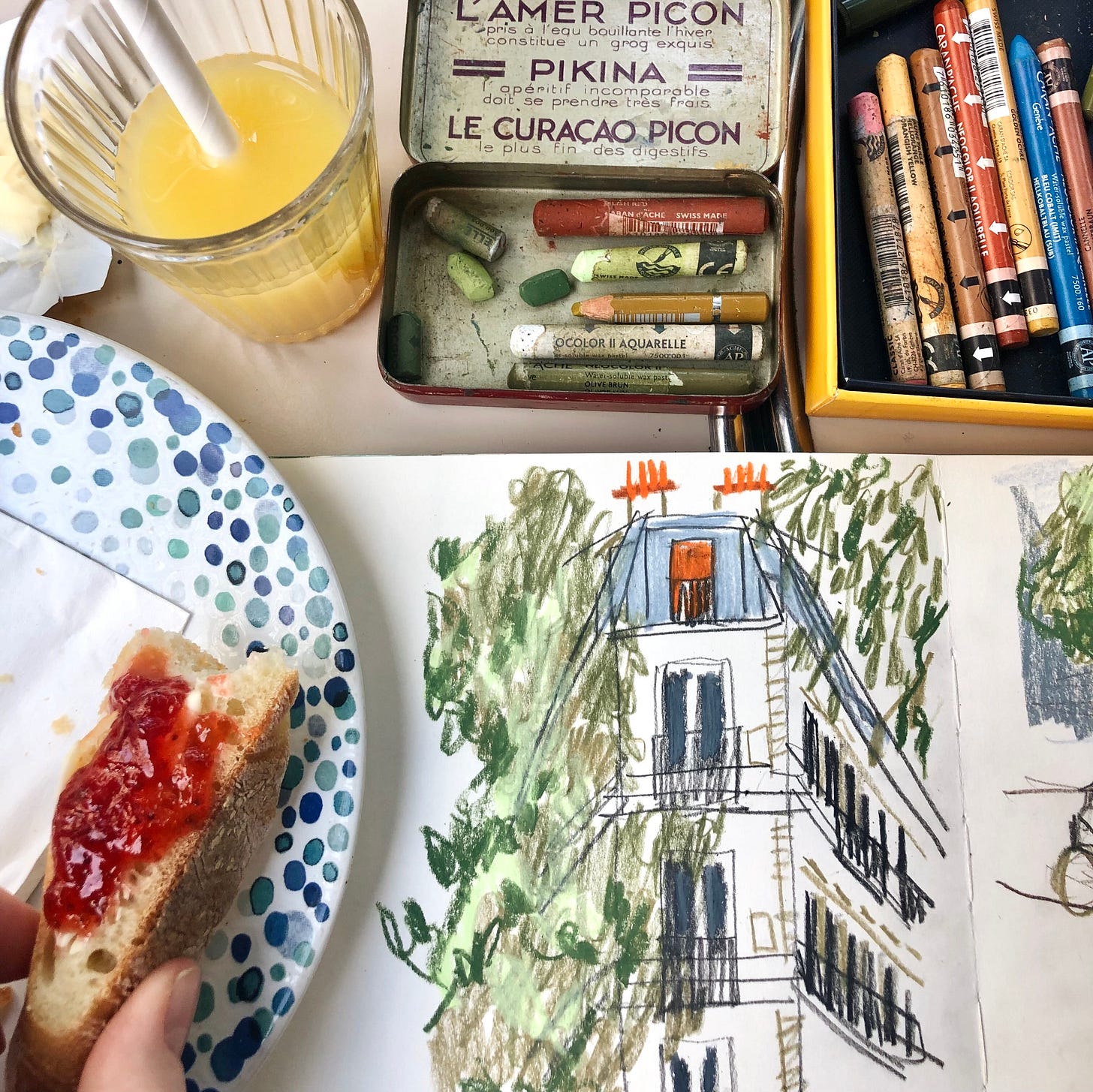 Drawing and breakfast in Paris, just before jumping onto the train back.