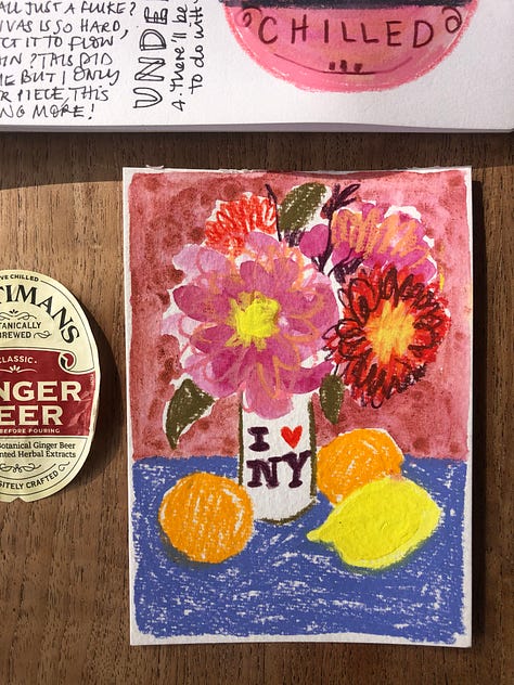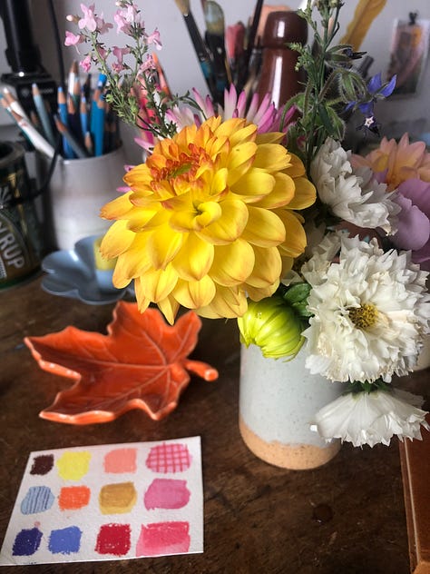 This is a free post for subscribers but you can also become a Time Foragers’ Club paid subscriber and meet up on Zoom 3 times a month (we draw, create and journal), receive a monthly video from my studio, PLUS chat with our blossoming creative community in our exclusive threads. We have occasional in-person meet-ups too.