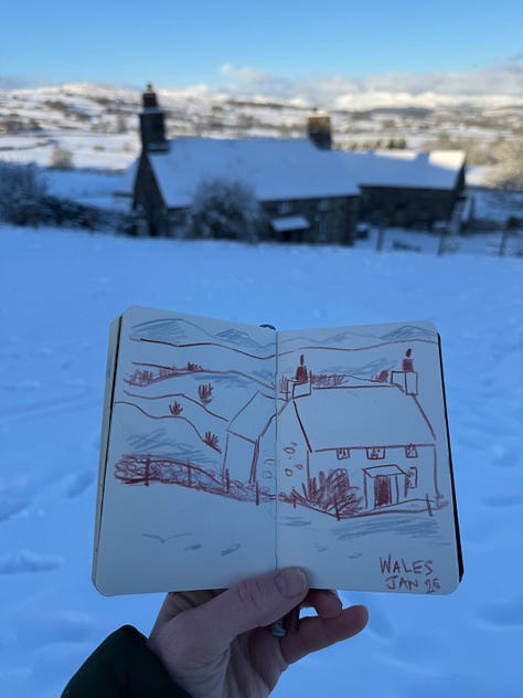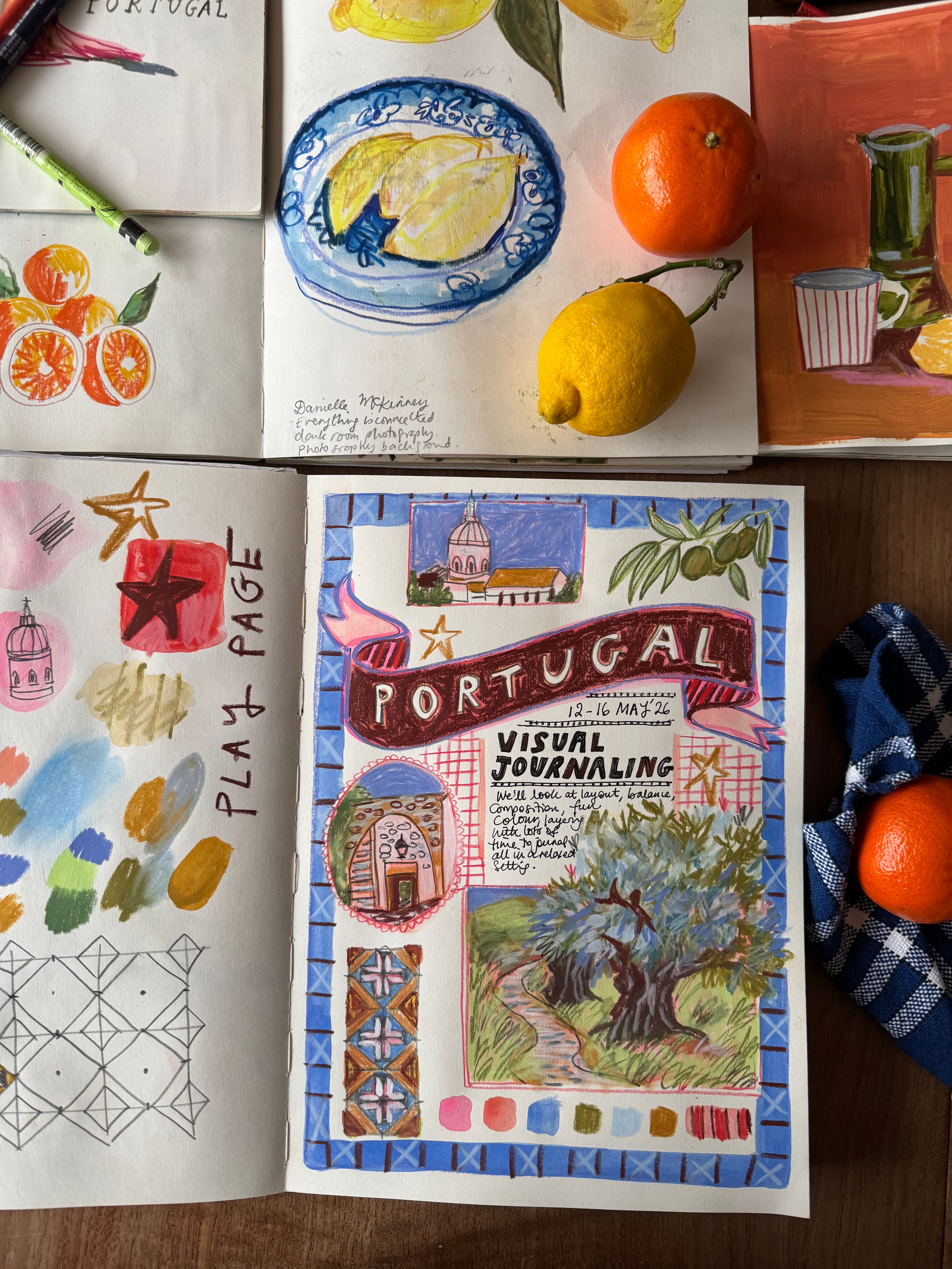 Finally, thanks to those who’ve already signed up to the Visual Journaling Retreat in Portugal, 12-16th May 2026. If you’re on the fence, we have a handful of spots available and I’d love for you to join! We will look at composition, layout, colour choices, while sketching landscapes and still life with local produce. As well as a dedicated art studio for some focused workshops, we will have opportunities to sketch outdoors the beautiful local vistas.