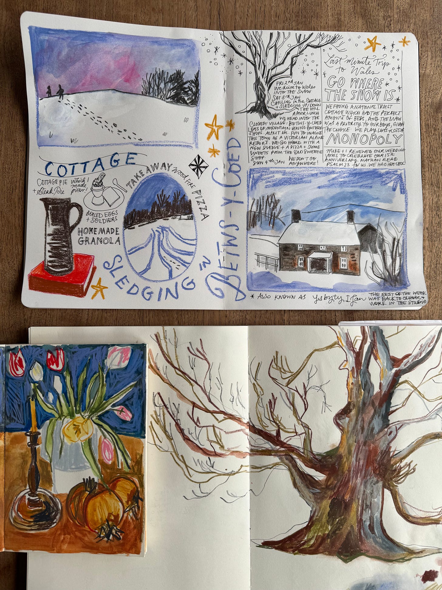 If you missed this last week, I shared this little video of last year’s visual journals. I also shared a much more in-depth video for paying subscribers in the club this week with my favourite materials and process.