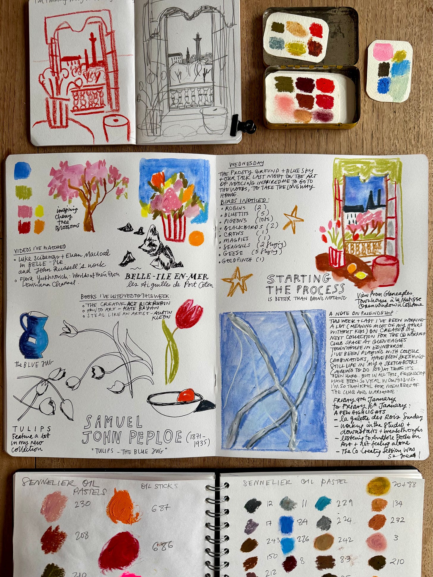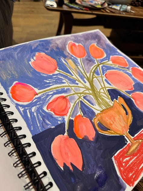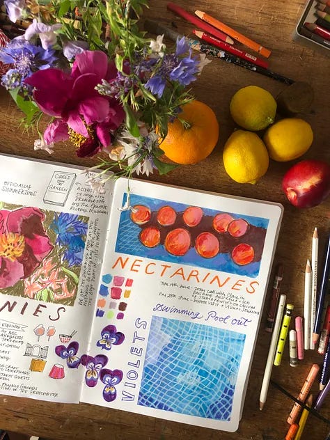 This is a free post for subscribers but you can also become a Time Foragers’ Club paid subscriber and meet up on Zoom 3 times a month (we draw, create and journal), receive a monthly video from my studio, PLUS chat with our blossoming creative community in our exclusive threads.