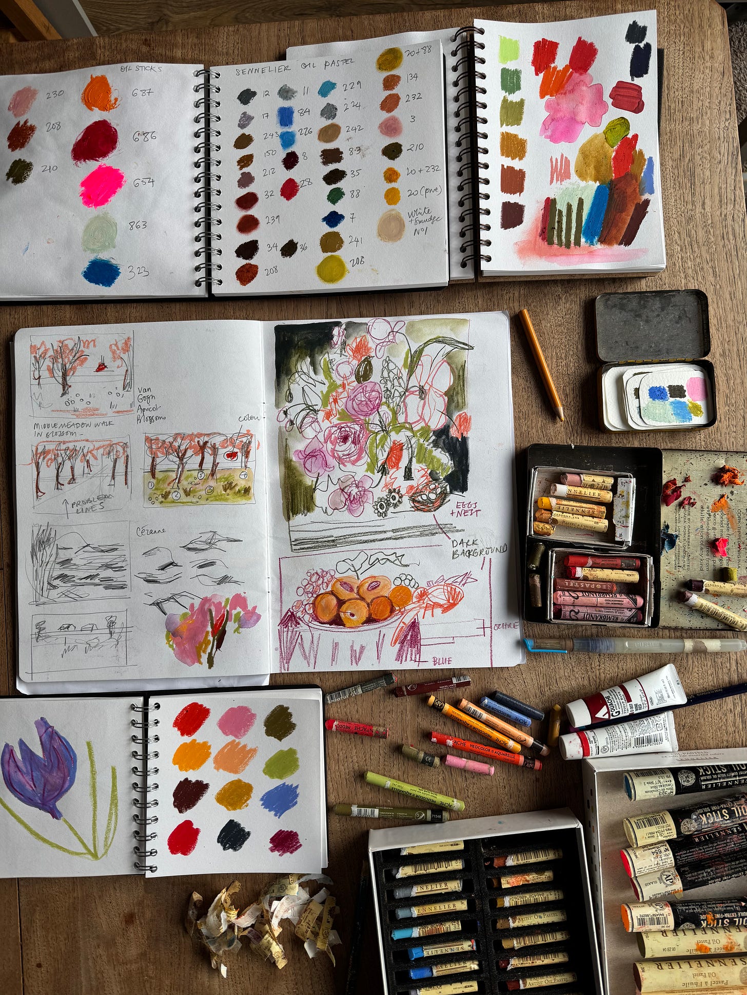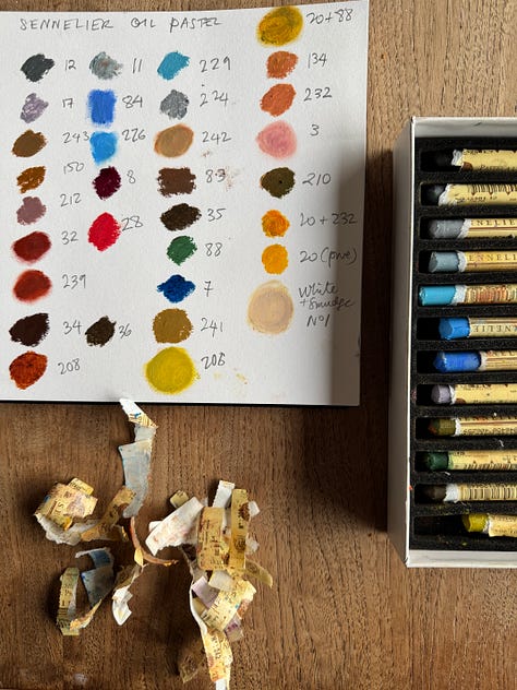 finding my dear Sennelier oil pastels (bought in Paris I should add, you can watch that video here) after having misplaced them. Turns out they were in my watercolour drawer
