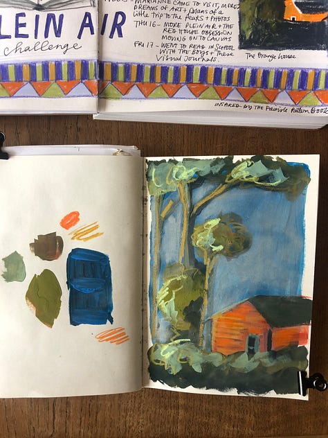 continuing the Plein Air Challenge and noticing some beautiful fences and an orange house