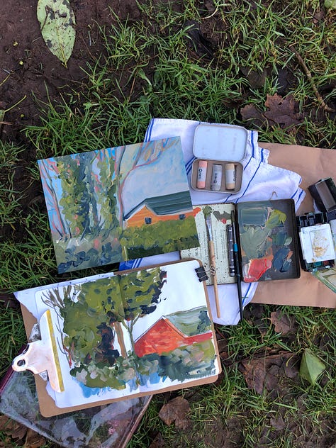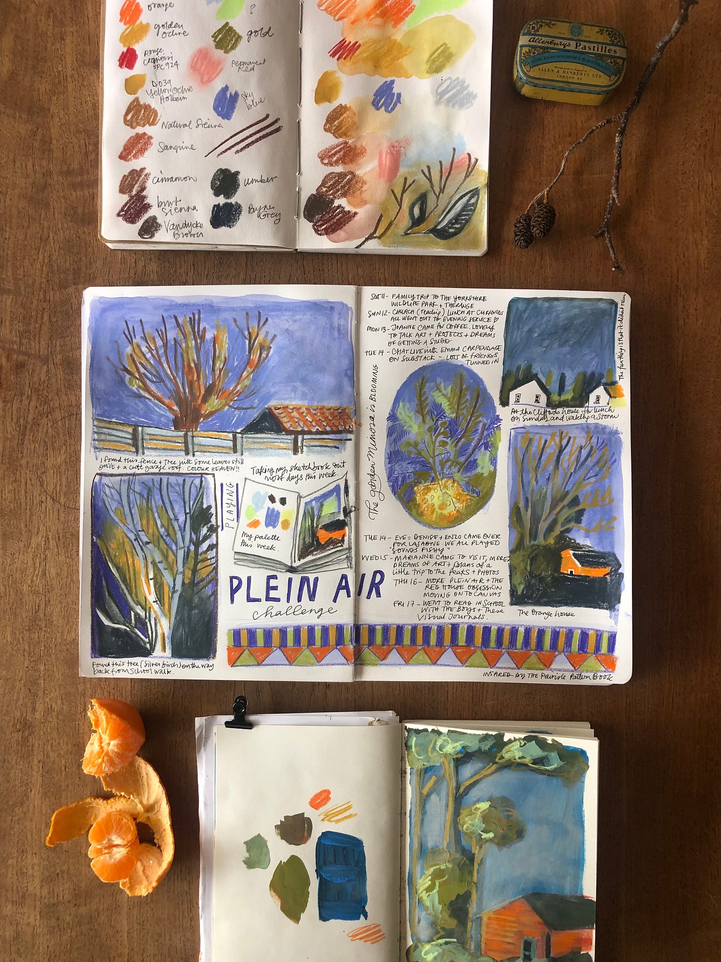 In the studio I’ve painted on canvas a cute little orange house I spotted on my walks and have continued to draw inspiration from the Plein Air challenge sketches. I’ve also been considering the workshops I’ll be teaching on the Italian retreat in September and preparing our free online event coming up on Monday 27th January, 7pm GMT which you’re all invited to (sign up here)!