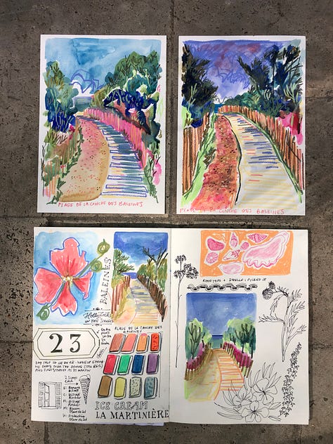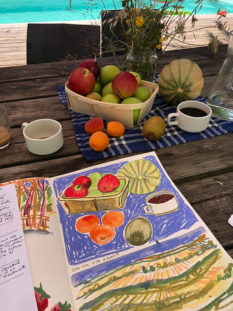 As mentioned in the club chat, I was invited to teach in Portugal with Sofia in Monsaraz. If you’re interested in carving out time to do some visual journaling with me, consider signing up for more info here “get early access”. Now that I’m back from France, Sofia and I have met on Zoom to plan the details of the program. We hope to launch bookings very soon. You can sign up to get early access to be among the first to hear more and be able to book.