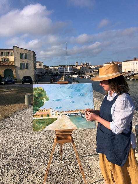 painting plein air and also indoors some still life and the view from our window… basically just painting